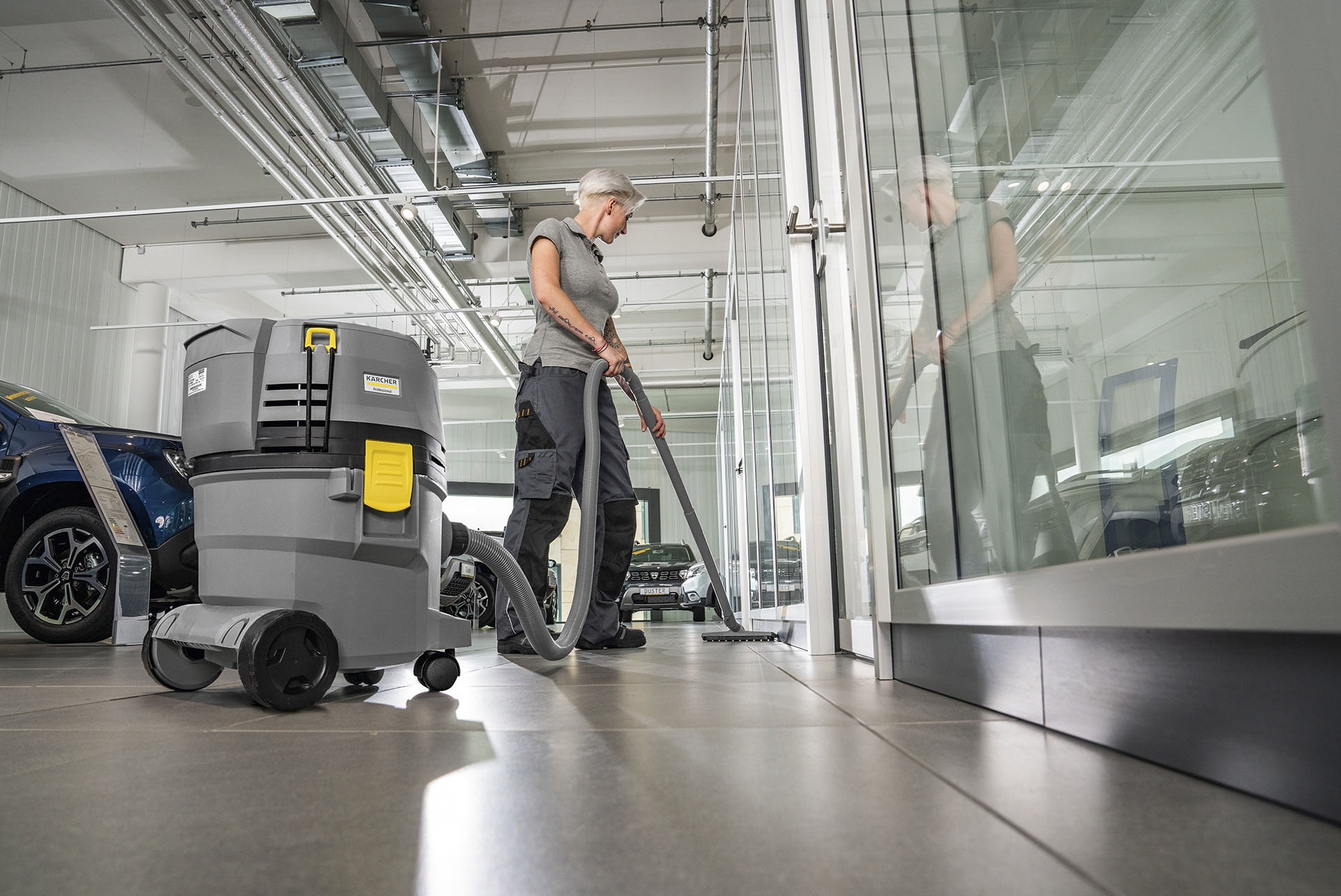 Para clientes que requieren equipos de limpieza a gran escala, Kärcher ofrece barredoras y fregadoras industriales diseñadas para mantener áreas amplias impecables con un esfuerzo mínimo. Estas máquinas combinan tecnología de última generación con facilidad de manejo, siendo perfectas para almacenes, fábricas y espacios públicos.