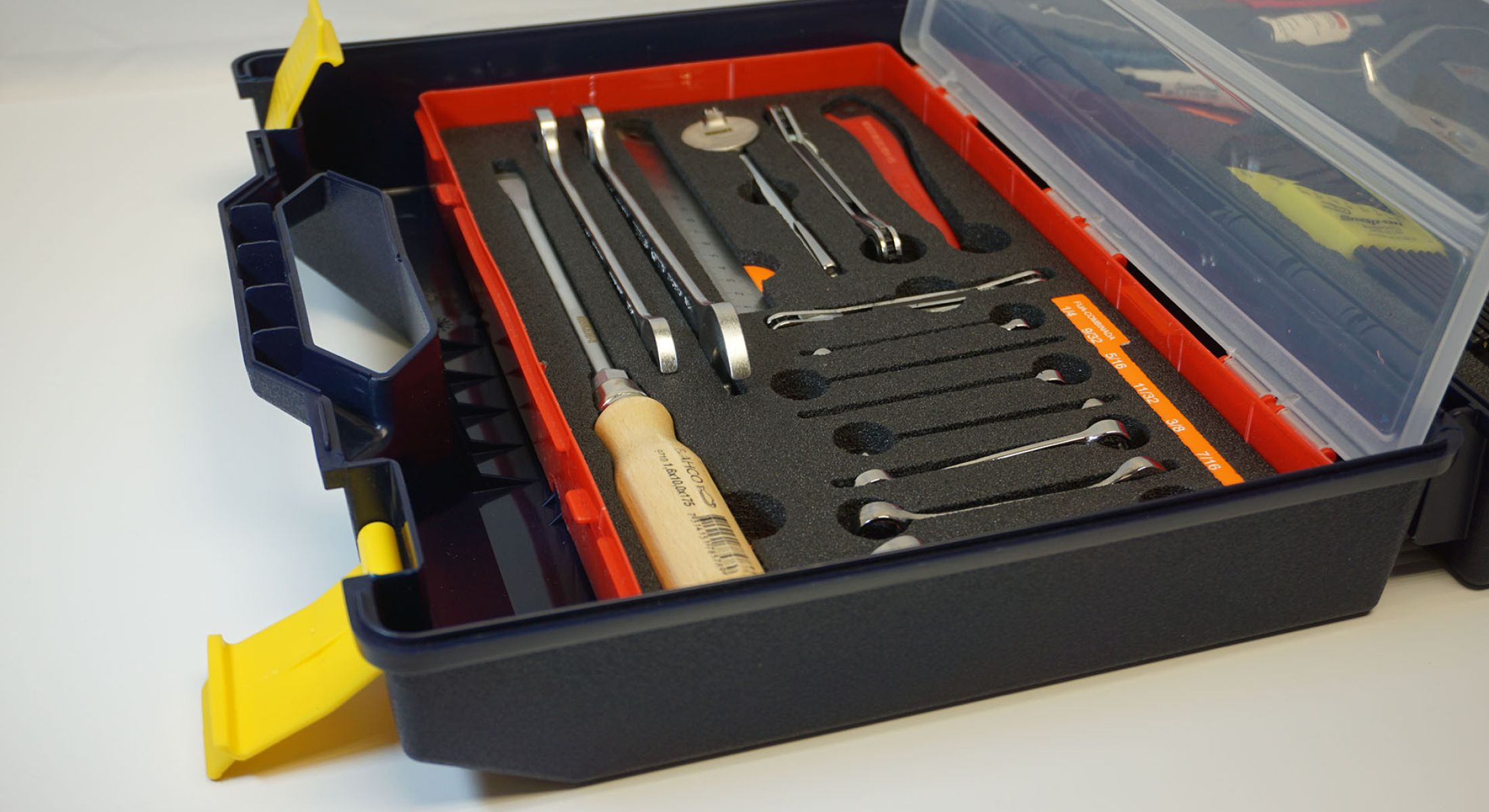 Foam inserts protect tools from damage, shock and wear.
