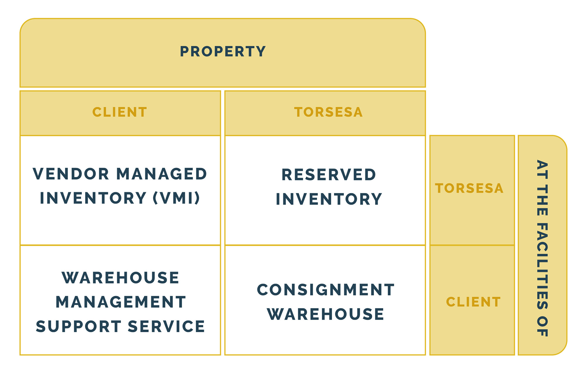 3. Consignment Warehouse – Custody at Torsesa’s facilities.