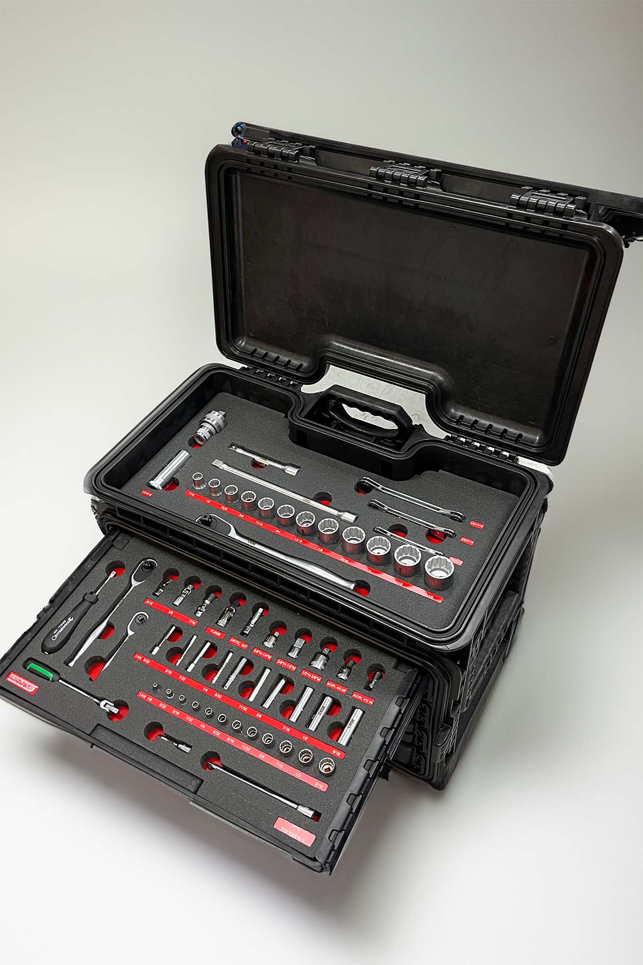 Optimización del almacenamiento y la organización de herramientas y útiles mediante el diseño y creación de insertos de espuma (FOAM) personalizados. Utilizamos tecnología de prototipado 3D, para desarrollar soluciones a medida que permiten un almacenamiento eficiente, seguro y organizado, adaptando la espuma a la forma específica de cada herramienta.